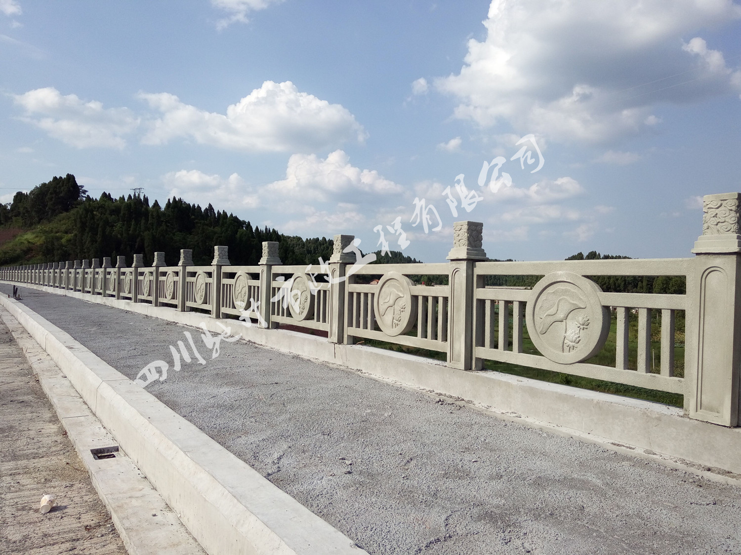 2016年8月8日,遂寧環(huán)城路二標(biāo)段神龍大橋鑄造石仿青石欄桿工程,已全面竣工。