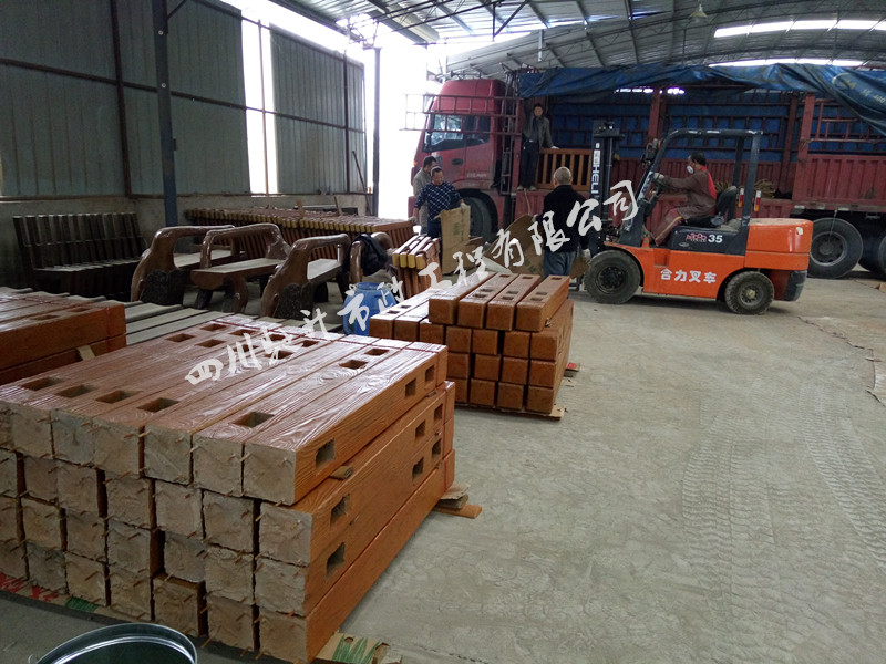 2016年11月初,我司承接的甘肅省隴南市鄉(xiāng)村建設《仿木欄桿》、《仿樹皮垃圾桶》、《生態(tài)光皮椅》、《仿樹皮桌凳組合》、《仿半圓樹皮凳子》已安排發(fā)貨!