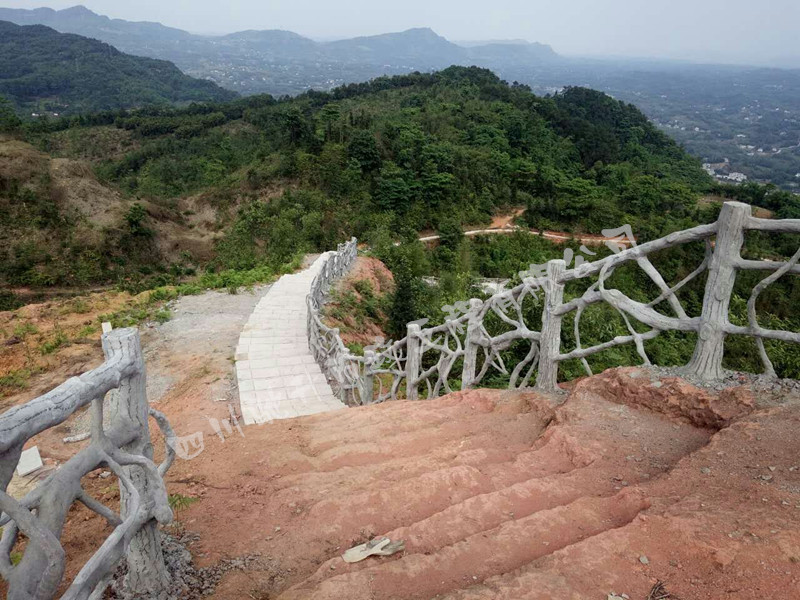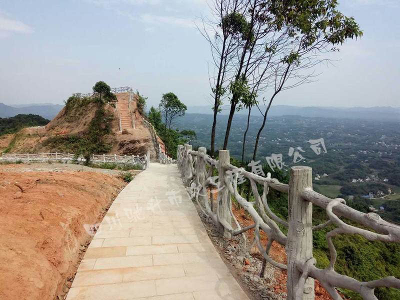 2017年3月~5月,我公司承接的宜賓江安縣江安鎮(zhèn)插旗山游山道工程《藤蔓纏樹塑石仿木欄桿項(xiàng)目》!