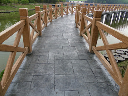 仿真木紋模具壓制紋理是目前園林景觀最流行的一種水泥仿木紋理的制作方法,仿木模具有很多工廠都有定做。具體做法:用做好的圓型木紋模具壓滾,在水泥表面材料上壓制出深淺不一的木紋,在30度下養(yǎng)護24小時后脫模,用苯丙外墻涂料配成木紋的顏色進行木紋刷制,有木結(jié)子年輪的地方要配深一些的色漿來完成木紋的仿真描繪。